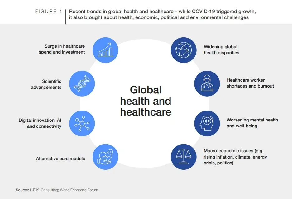 | Landscape and Convergence | Data science, genomics, biotechnology, and IT are merging to create a portfolio of innovations that improve care delivery, access, and financing; driven by demand, aging populations, and challenges like infectious diseases, non-communicable diseases, and inequities. |